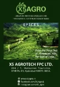X5 AgroTech Farm Producer Company Operates in the Himalayan Hill Region of Arunachal, Manipur, Nagaland and Meghalaya in INDIA where the Soil is PIOUS with Zero Chemical Traces. The land has never ever been exposed to any sort of Chemical Fertilisers or Pesticides. The Produce is Super Rich and superb in Fragrance, Taste and Flavour. The Company works directly with approx 9,000 Farmers thru 24 FPOs, Co-operative Farming & Own Farming in the Region Bordering Tibet & Myanmar. Certified Organic Produce, The Company Offers Farm to Finished Goods Solutions. Read Less
